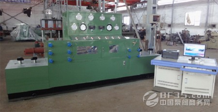圖為YFS-ZC200t型智能型油田閥門專用試驗(yàn)臺是國內(nèi)水壓試驗(yàn)壓力最高的試驗(yàn)臺,最高試驗(yàn)水壓為157.5MPa,均采用數(shù)據(jù)采集系統(tǒng)和遠(yuǎn)程控制系統(tǒng),符合API6A油田閥試驗(yàn)標(biāo)準(zhǔn),以及確保人員安全試驗(yàn)。使用于江蘇宏泰石化機(jī)械有限公司等單位。