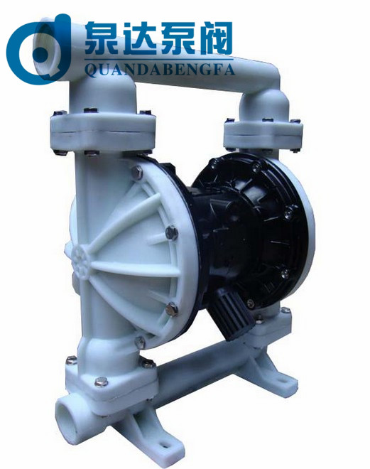 氣動工程塑料隔膜泵是永嘉縣泉達泵閥制造有限公司生產(chǎn)的一種新型輸送機械,工程塑料隔膜泵主要用于輸送偏酸性的液體及用戶要求泵整機重量偏輕的工況,重量輕便于移動。氣動隔膜泵已被國內(nèi)一千多家石油、化工、電子、陶紡織系統(tǒng)單位采用,安置在種特殊場合,用來抽送各種常規(guī)泵不能抽吸的介質(zhì),均取的了滿意的效果。 泉達生產(chǎn)的工程塑料氣動隔膜泵也稱聚丙烯氣動隔膜泵是目前國內(nèi)最新穎的一種泵類。我們公司設(shè)計的該款泵是采用壓縮空氣為動力源,對于各種腐蝕性液體,帶顆粒的液體,高粘度、易揮發(fā)、易燃、劇毒的液體,均能予以抽光吸盡。其性能參數(shù)與聯(lián)邦德國的 WLLDENPVMPS、美國的MARIOWPUMPS相近.本廠目前已形成系列化生產(chǎn),共有八種規(guī)格直徑:¢10mm3/8"、¢15mm1/2"、¢25mm1"、¢40mm11/2"、¢50mm2"、¢65mm21/2"、¢80mm3"、¢100mm4"。四種材質(zhì)、鋁合金、鑄鐵、不銹鋼、工程塑料隔膜泵。塑料隔膜泵根據(jù)不同液體介質(zhì)分別采用丁晴橡膠、氯丁橡膠、氟橡膠、聚四氟乙烯。以滿足不同用戶的需要。